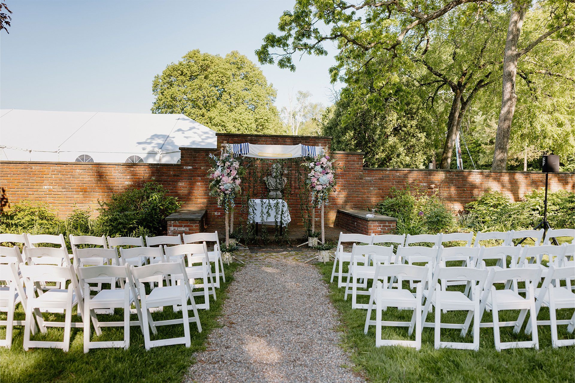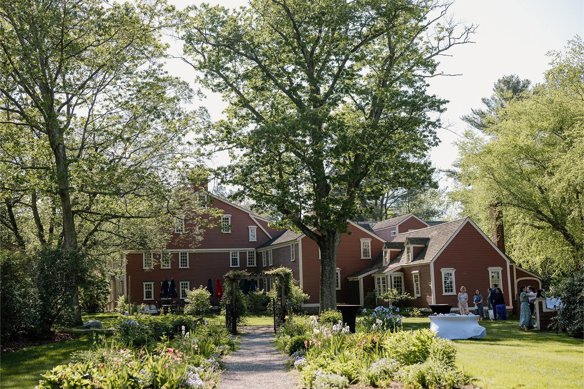 Experience our exquisite Gardens, nestled between The Inn and the Events Tents. This enchanting outdoor space can be used for intimate wedding ceremonies as well as cocktail hours, providing a relaxed yet elegant atmosphere for your family and friends to gather, mingle, and toast your new life together. Surrounded by the natural beauty of the New England countryside, the Gardens are ideal for pre-reception moments, small ceremonies, or simply taking in the scenic charm of The Wayside Inn.